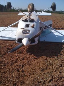 “The engine started puttering after I added power on the normal step of recovery, but we were unable to maintain lift and my flight instructor landed the plane in a dirt field,” she said. “It was a good landing, but the dirt had been plowed a day or two before, and as the plane slowed, the nose wheel dug in and we flipped over.”