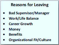 Not surprisingly, the top reasons for voluntary turnover have not changed. The number one reason an employee leaves is still a “bad” supervisor or manager.