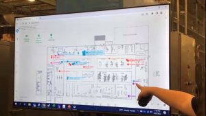 The system not only tracks the order, but it also generates spaghetti path charts and heat charts that indicate waiting times for orders. During this visit, a new phone app was also demonstrated that could locate the order within one inch of proximity. This system does also offer other capabilities including geofencing.