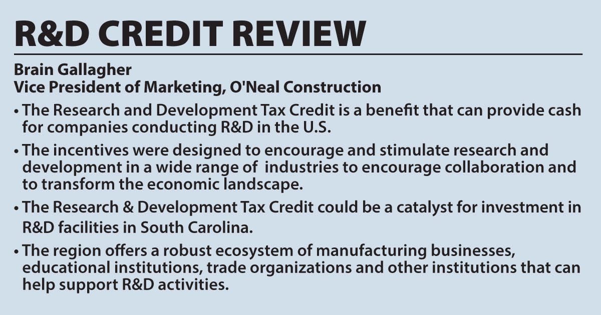 Brian Kuney, a regional VP at the South Carolina Manufacturing Extension Partnership, said most in-state firms don’t understand the R&D credit, but it is an advantage and should be utilized, “alongside a tax expert.”