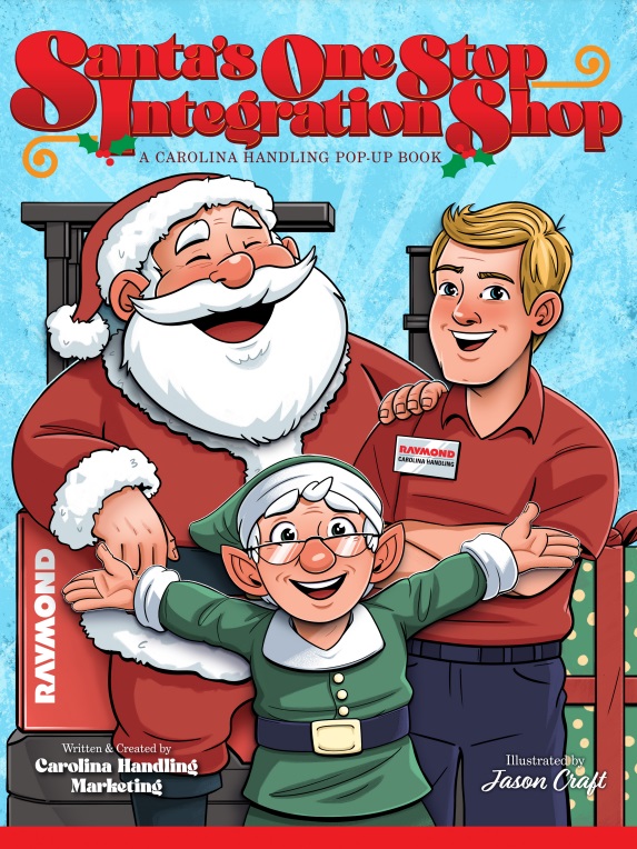 Carolina Handling touts its continuing evolution from a forklift-only provider to an intralogistics solutions company with the publication of a new holiday pop-up book entitled Santa’s One-Stop Integration Shop.