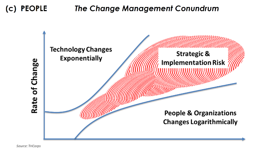 Isaac added that the industry 4.0 revolution adds a high level of complexity to this balance. Technology advancement is changing exponentially, while people and organizations are changing logarithmically, creating a “change management conundrum.”