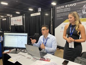 Rick Oppedisano, President and CEO and Ashley West, Sales Representative (pictured right), demonstrated the power of the Artificial Intelligence to help solve some of a plant’s most challenging issues. Delta Bravo worked with Nucor steel to reduce scrap in one plant by 17%.
