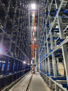 It was also one of the highlights of the tour. Inside, four cranes move traverse throughout the warehouse, transporting both the raw material rolls, rolls to be processed, and finished labels. This vertical warehouse can store a large amount of material – up to 16,000 large rolls of materials and 15,000 shelves for finished labels.
