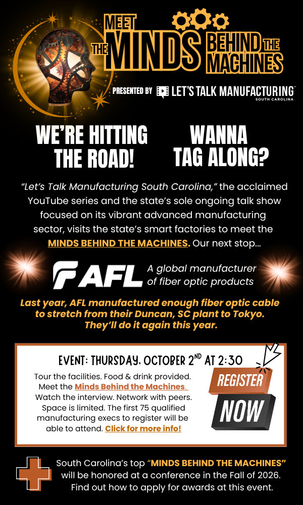 Meet the Minds Behind the Machines – AFL Manufacturing Tour – Register Today! Posted By: SCMFG/Staff August 11, 2025