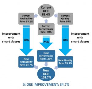 Smart glasses, and “augmented reality” solutions (AR), offer a wide range of benefits that accrue over time. Of course, implementing any new technology requires a significant investment in money and resources. That’s why it’s critical to be able to show a clear, reliable, and significant return on investment during the cost-benefit assessment. In manufacturing, the key metric driving ROI is Overall Equipment Effectiveness (OEE). The question is: how do smart glasses impact OEE – and how does that translate into ROI?