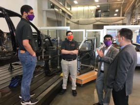 Srikanth Pilla (center in the purple mask) is principal investigator on project aimed at reducing the weight of a Honda SUV.