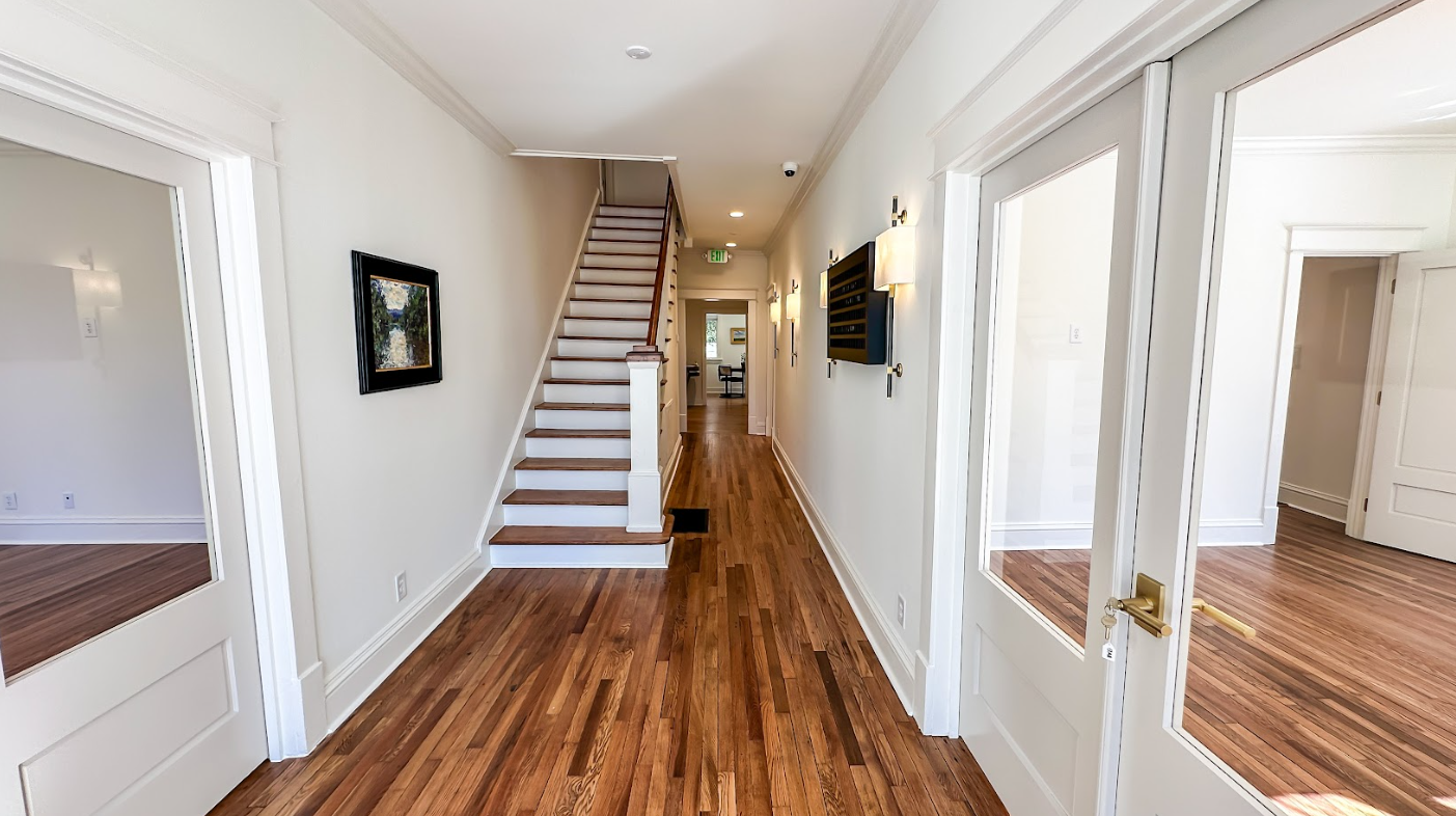 Designed as executive office space, The Franklin features 12 offices ranging from 90 to 225 square feet, a shared break area and a shared conference room. Walls and floors of the 107-year-old structure have been acoustically insulated to reduce sound transmission and improve energy efficiency. Leases include utilities, fiber-optic internet service, access to printers and copiers, cleaning services and parking.