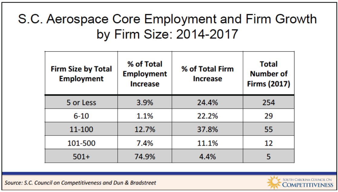 Figure 1 – Data presented by SC Council on Competitiveness and SC Aerospace. The full report will be presented at the Aerospace Conference and Expo in October.