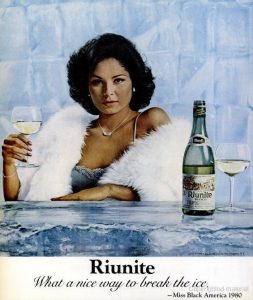 The Riunite ads had what was, at the time, the most infectious jingle on television and I loved to sing it aloud. This led to some embarrassment for my poor mama when she visited the Community Cash grocery store, pushing her young daughter in a buggy as the little tow-headed tyke sang “Riunite on ice! Riunite so nice! Riunite, Riuniteeeee!” at the top of her lungs. I still remember her “I am so sorry, I promise I do not give cheap wine to my 5-year old, please don’t call DSS” expression as we shopped.