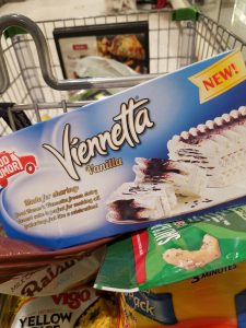 Brusquely pushing past the polite, bespectacled young man offering buggies (“A buggy? Dammit man, no time! There’s Viennetta to be had!” I could be heard saying,) I threw etiquette to the wind and immediately cut the wrong way THROUGH one of the checkout lines, like a frenetic blonde salmon swimming upstream, to reach the Frozen Foods section that harbored my heart’s desire.